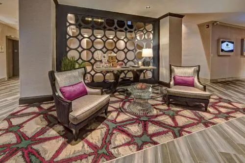 This hotel offers extensive accessibility features including accessible rooms with roll-in showers and accessible bathtubs. It provides wheelchair accessibility throughout its grounds, including public areas, meeting spaces, and restaurants, complemented by accessible parking, visual alarms in hallways, Braille signage, and lowered control panels.