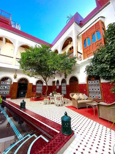 Riad La Perle Rouge in Marrakech consistently receives high acclaim from visitors, who highlight its ideal location, exceptional dining experiences, and outstanding service. Nestled in the historic Kasbah district, the riad offers a tranquil yet conveniently accessible setting, perfect for exploring major attractions like Jemaa El Fna square and the Saadian Tombs. Guests appreciate the peaceful environment and vibrant yet serene neighborhood that allows for a genuine taste of local life.