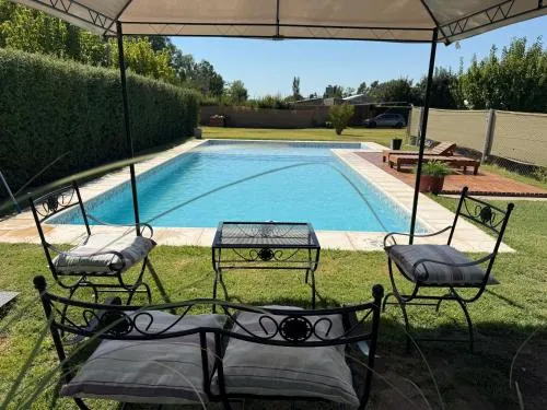 Two-Bedroom HouseThis holiday home's standout feature is the pool with a view. Boasting a private entrance, this air-conditioned holiday home includes 1 living room, 2 separate bedrooms and 1 bathroom with a bath and a shower. Guests will find a refrigerator, kitchenware, an oven and a microwave in the fully equipped kitchen. The holiday home also features a barbecue. The holiday home offers a tea and coffee maker, a dining area, a wardrobe, a flat-screen TV, as well as garden views. The unit has 4 beds.